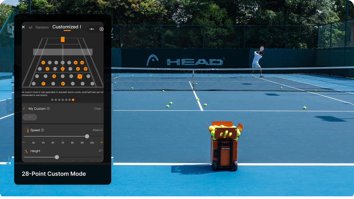 Besides the traditional buttons on tennis ball machine, Veva Tennis ball machine can be smoothly controlled by a smart APP. Search "VEVA Tennis" in the app market of your phone, then trainings all set via one touch.